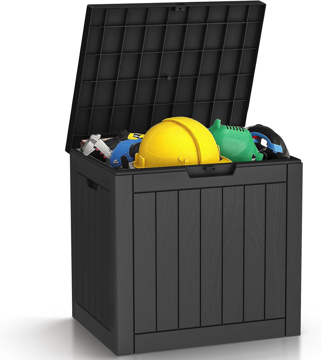 31 Gallon Outdoor Storage Box - Waterproof Resin Deck Box for Indoor & Outdoor Use, Lockable & UV Resistant Storage Bin for Package Delivery, Patio Cushions, Gardening Tools - Grey