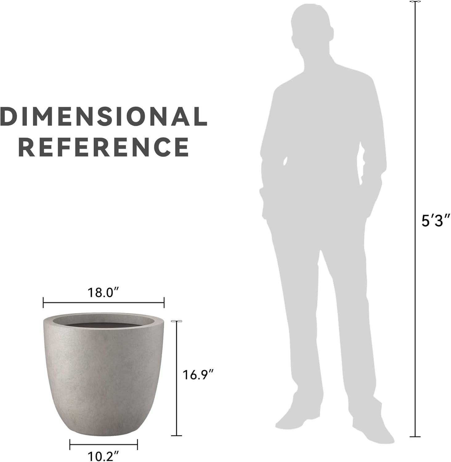 These elegant round planters have authentic concrete finish with visible pores make them beautiful contemporary pieces. The look and feel is true concrete but it weights substantially less than it looks. It also has a very smooth finish instead of rough concrete potters you might be used to. The size is very generous and can hold a good amount of plants without looking crowded. Would look great on an apartment balcony or large backyard patio. The smooth lines and round shape of these planters will help you maintain a modern design throughout your space. You can’t go wrong with the grey finish as it blends well with any décor. They can be used individually, as a set or in a row to promote unity. Made of Lightweight concrete through an manufacturing process. This composite material has no ruber, plastic, and steel. This material has all the advantages of concrete such as strength, durability, weather and damage resistance. Materials involve cement and weather-resistant fiberglass. This material has strong UV resistant ability and stay well in wind, rain, hot and cold season. By adding fiberclay material, planter is much easier to move around due to its lighter weight.