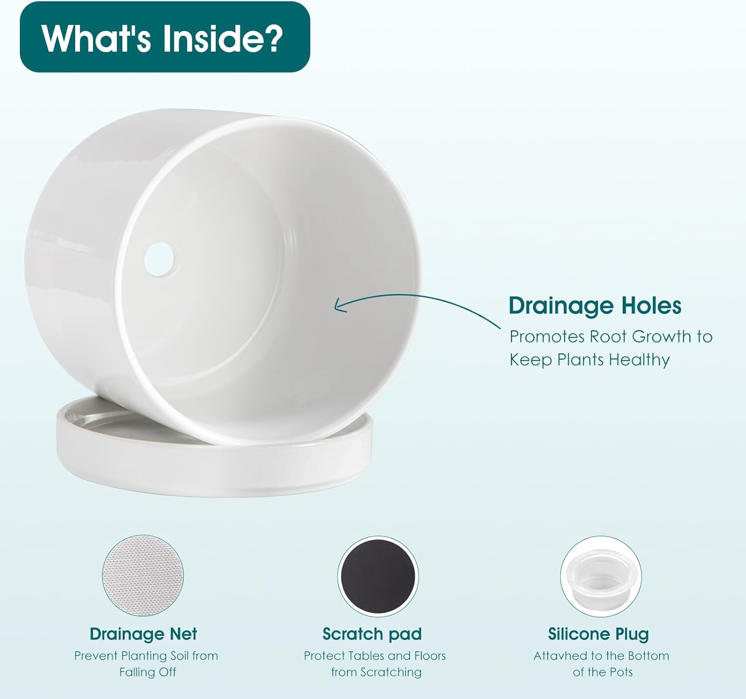 Silicone Plug -attavhed to the bottom of the plant pots, (NOTE: when the planting is completed, please remove it in time)